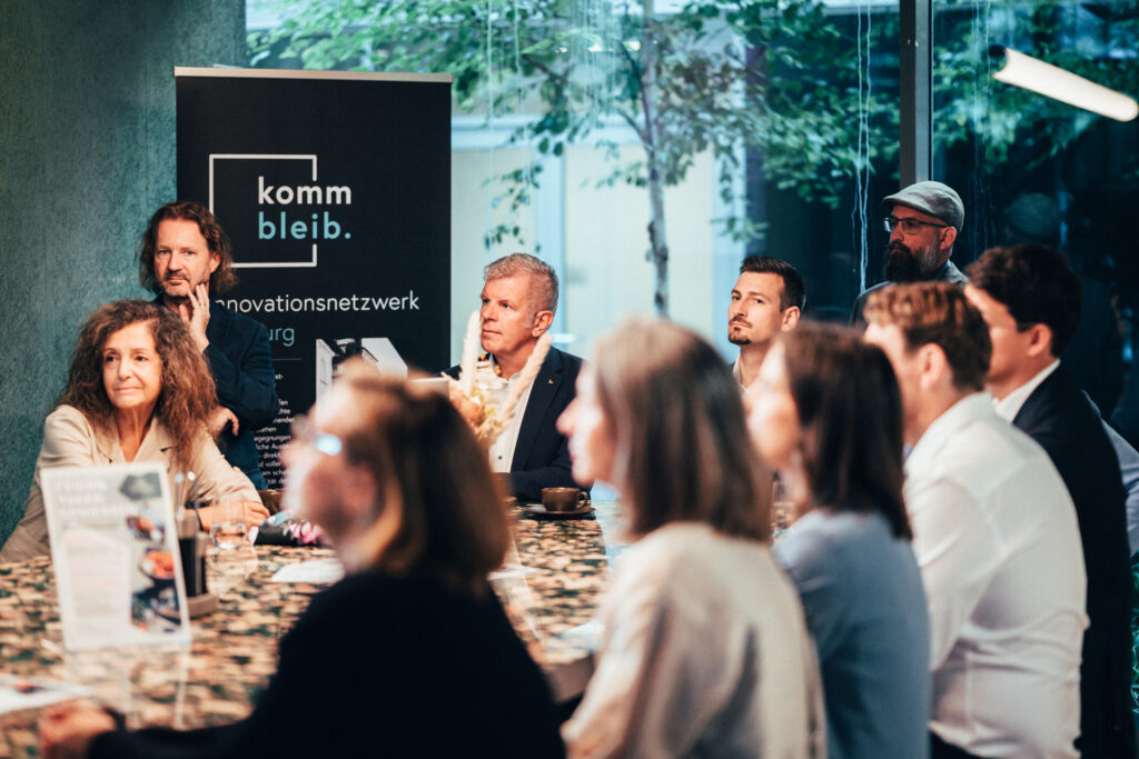 Beim kommbleib Netzwerk-Event kommen innovative Unternehmer:innen zusammen, um sich auszutauschen, voneinander zu lernen und neue Synergien zu schaffen. Hier zählt die persönliche Ebene: direkte Connections auf Augenhöhe, wertvolle Impulse und eine Community, die gemeinsam weiterdenkt.